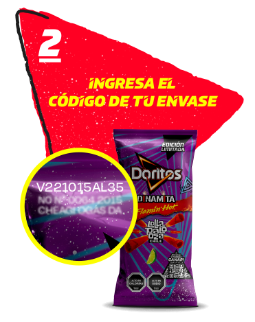 Promoción finalizada. Gracias por participar. Pasos Premios Ganadores Bases Legales Mis códigos ¿CÓMO PARTICIPAR? ¡FÁCIL! 1 Compra tus doritos favoritos Promo Step Image 2 Ingresa el código de tu envase Promo Step Image 3 ¡Y listo, participando! Promo Step Image